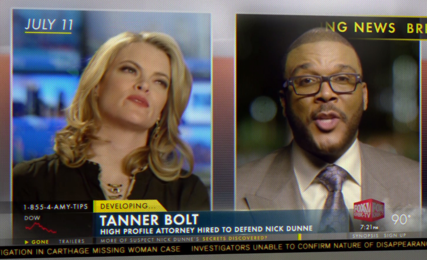 If Gone Girl accomplishes anything perfectly, it captures the blatant satire of the media in our lives controlling how we base our decisions on personal affairs. Is Nick Dunne a murderer or a framed husband? The media becomes a villain against Dunne who is framed by Gone Girl Media Satire his wife in an elaborate scheme. In order to protect himself and salvage his innocence, Dunne must manipulate the media with the help of his suave, big-shot attorney Tanner Bolt (well-executed by Tyler Perry). When media coverage of Dunne’s mistress breaks, Dunne sets up an exclusive interview with NCB personality Sharon Schieber (played by Sela Ward). Dunne uses television as a platform for viewers around the country to believe in his innocence. He morphs into a trained professional at tackling critical media scrutiny–he learns a script, masters how to use appropriate movement in conversation and even grasps how to emotionally express believable sorrow. He uses the media not only to admit his infidelities and his guilt over losing Amy, but as a platform to reach out to Amy and acknowledge her kidnapper. Nick Dunne becomes a trained pro at how to play the media game, and Ben Affleck scores at embodying this claiming to have modeled his character on convicted killer Scott Peterson.